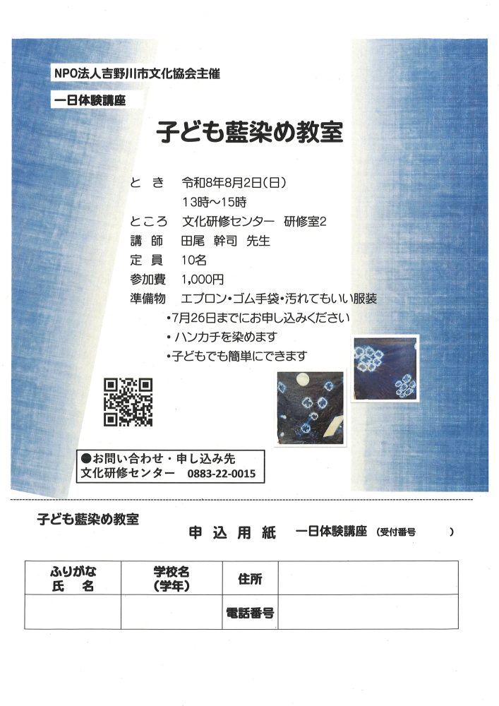 一日体験講座「子ども藍染め教室」
